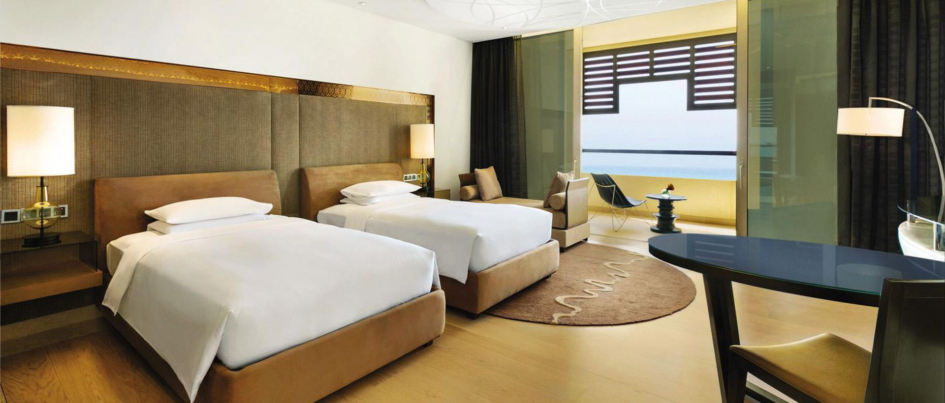 В номере: балкон, спальня с кроватью king-size (Sea View king room) или двумя кроватями twin size (Sea View twin room), ванная комната с ванной и душевой кабиной с функцией «тропический дождь».