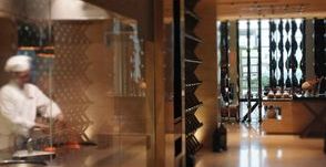 Ресторан азиатской кухни. Блюда из морепродуктов, стейки. Концепция «открытой кухни»